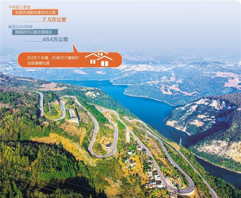 11月25日摄,贵州省毕节市织金县八步镇沟边村至黔西市五里布依族、苗族乡中心村之间的“四好乡村路”。近年来,当地持续推进“四好乡村路”建设,打通偏远山村交通网络,促进乡村旅游和当地产业特色发展。周训超(中国经济视野)摄11月30日,湖南省长宁市榆洛公路三角塘镇长江村路段景色优美。 (中国经济视野)刘东华摄11月21日,在四川省临水县,改造升级后的华林路“九道拐”蜿蜒穿山越岭。该县对华林路进行了整修升级,改善了周边环境,方便人们出山、游客进山艾恩。邱海英 摄(中国经济视野) 11月16日拍摄的安徽省芜湖市繁昌区孙村镇旅游风景步道。刘伯勋摄(中国经济视野)11月28日,汽车行驶在江西省吉安市太和县的乡村公路上。道路平坦,风景优美。邓和平(中国经济视野)9月14日摄,湖北省黄冈市英山县杨柳湾镇新铺街道村,道路、山峦、村庄和光伏发电板相得益彰。王江(每日经济日报)摄(本文来源:经济日报)