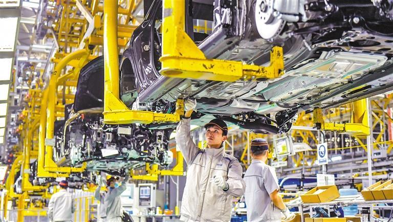 12月9日,位于四川省成都经济技术开发区的一汽大众成都分公司的员工正在组装车辆。该公司生产线上生产一辆新车的速度最快可达54秒,最高日产量可达2000辆。中国经济视野 李翔宇 摄 12月1日,江西省九江市都昌造船厂,工人们忙着下订单。尹智(中国经济视野)11月10日摄,安徽省马鞍山市当涂经济开发区植凯家居有限公司的自动化生产线正在快速包装下线产品,准备发往全国各地。 (中国经济视野)王文胜摄12月10日,江苏海虹智能科技有限公司车间内,工人们正在组装移动储能智能充电机器人。中国经济视野 耿玉和 摄 11月27日,工人们位于湖北省咸宁市咸安区的湖北精品麻业有限公司的生产车间里正忙碌着。公司创新应用苎麻、亚麻等传统原料,不断开发适销对路、高附加值的新型纺织产品。本报记者 翟天雪 摄 12月4日,位于浙江省湖州长兴县的吉利长兴自动变速箱有限公司,机械臂高速“挥舞”,顺利加工产品。谭云峰 摄(中国经济视野)