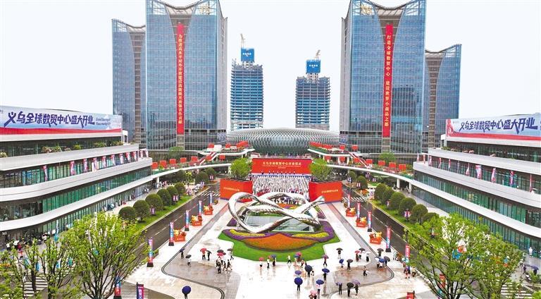 10月14日,义乌全球数字贸易中心正式开业运营。 10月15日,浙江省义乌市国际商贸城二区市场内,商贩在选购雨伞。 10月14日,客商在义乌环球数字贸易中心举办海外直播义卖活动。这里的3700多名“新摊主”已经从传统商业范式中跳跃出来,成为懂人工智能、会用人工智能的“数字商业专家”。 10月14日,主播带货在义乌环球数字贸易中心直播。今年1-8月,义乌开展网络人气直播带货65.76万人次,同比增长20.65%;零售额427.43亿元 同比增长14.93%。 10月15日,义乌商贸城一商户的墙上挂着一张产品覆盖区域地图。义乌市场有超过210万种产品销往230多个国家和地区。 10月15日,义乌国际商贸城二区市场,商贩在办理网上订单。 10月15日,义乌国际商贸城二区市场,商贩正在整理商品。该市场主要经营五金工具、新能源、小家电等。10月14日,商户在义乌环球数字贸易中心采购珠宝首饰。 2023年9月20日上午,习近平总书记在浙江金华义乌国际商贸城考察时强调,义乌小商品已闯入大市场、成为大产业。达到这一点是值得注意的。每个人都是参与者、建设者、贡献者。商贸城要创造新辉煌作出更大贡献拓展国内国际两个市场,畅通国内国际双循环。小商品,大市场,不断创造新的辉煌。记住殷殷总书记,义乌瞄准国际国内市场,不断拓展新市场、新业态、激发新理念。截至9月30日,义乌市场经营主体总数123.77万户(其中商户35.42万户,个体户88.35万户),位居全国县级地区第一。今年以来,义乌新设市场经营户17.37万个,占浙江省总数的13.93%。近日,义乌市场第六代标志——全球数字贸易中心正式开业运营。项目围绕新贸易、新市场、新地标三大主线,融入“六大贸易要素数字化升级”“人、货、场、信息流、商品流、资金流”,打造以跨境电商等数字贸易为核心的新一代复合市场,引领全球小额贸易贸易新潮流。这标志着义乌市场完成新一轮转型升级,开启从传统贸易模式向数字贸易生态跨越的新进程,向数字化、国际化、现代化、低端化的全球贸易标杆迈进。 碳化。这个总投资83亿元的项目也是浙江提高开放水平、加强数字贸易的重大标志性项目。有望成为全省数字贸易发展的又一“新引擎”。以全球数字贸易中心为载体,义乌将做强推动数字技术赋能传统贸易,实现浙江“稳扩优化”结合深化义乌国际贸易新一轮综合改革,更好推动“小商品”融入“大市场”,形成“大产业”,推动“大开放”,推动浙江省高水平走向世界。 。