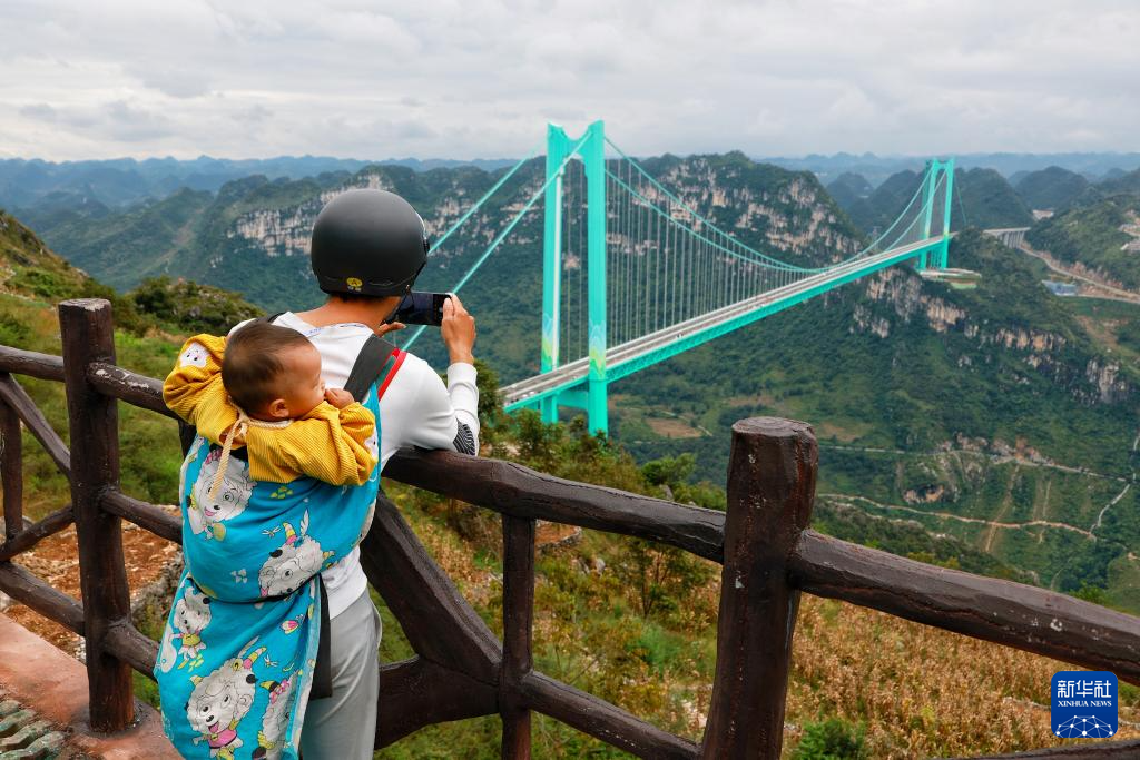 9月27日,当地人与孩子身后一起参观了桥梁。 9月27日,许多人到达了圭村省的Huajiang Canyon海岸,参观了Huajiang Canyon桥,该桥在9月28日正式完成并在交通中开业。该桥的总长度为2,890米,大长度为1,420米。目前,它是世界上曼德斯峡谷中最大的跨度钢桁架悬架。该甲板的桥梁是垂直于水面的625米,使其成为新世界最高的桥梁。新华社记者刘Xu摄