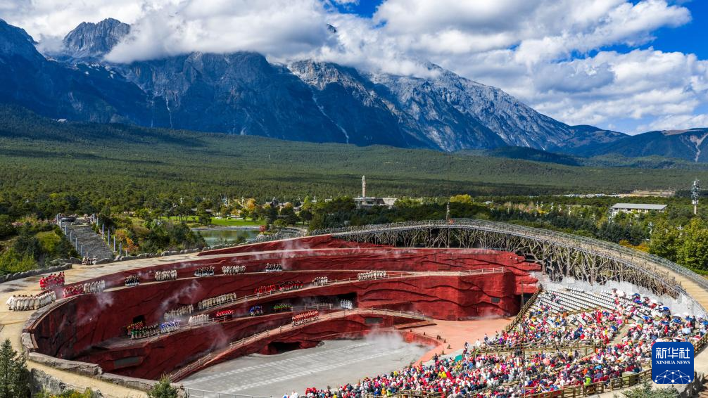中国经济网版权所有 中国经济网新媒体矩阵 网络广播视听节目许可证(0107190)(京ICP040090) 10月26日,游客在丽江市玉龙雪山景区观看《印象丽江》演出(无人机照片)。当天,云南丽江晴空万里,景色迷人,吸引了吸毒游客。新华社记者 胡超 摄